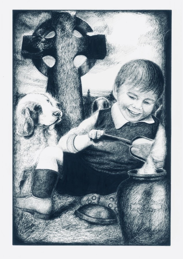 25. -am Ufer-, 2022, Kaltnadel, 20 x 20 cm, Einstiegspreis: 95,-