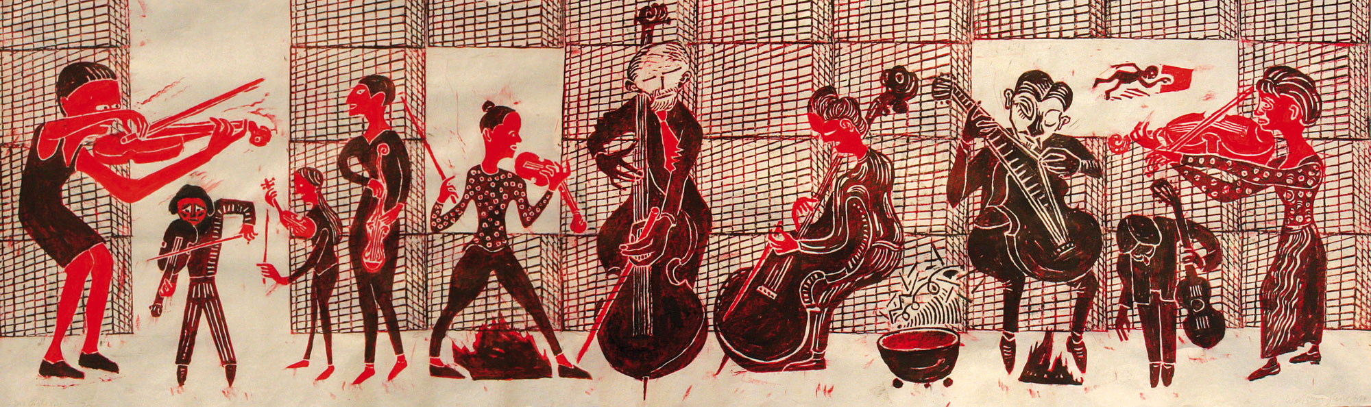 13. Wolfgang Smy, -Das Orchester-, 2014, Linolschnitt/ Frotage,
